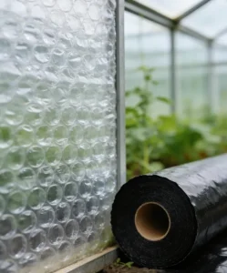 • Пузырчатая плёнка для теплиц: Используется как дополнительный слой теплоизоляции в зимний период. Воздушные пузырьки эффективно удерживают тепло, снижая затраты на обогрев. Толщина такой плёнки обычно измеряется в микронах (Микроны), и мы предлагаем варианты от 100 до 200 микрон.